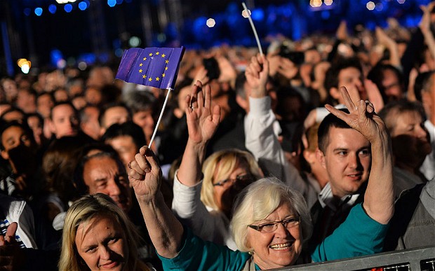 Zeci de mii de persoane au aclamat luni, la ora locală 0.00 (1.00, ora României), aderarea la Uniunea Europeană (UE) a ţării lor, după 22 de ani de la proclamarea independenţei faţă de fosta Iugoslavie. „Bine aţi venit în Uniunea …