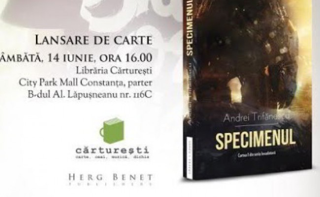 Editura Herg Benet Publishers va invita la lansarea celui mai tanar scriitor publicat pana in prezent, constanteanul Andrei Trifanescu, autorul romanului „Specimenul”, primul volum din seria „Invadatorii”, in libraria Cărturești, sambata, 14 iunie, ora 16:00.