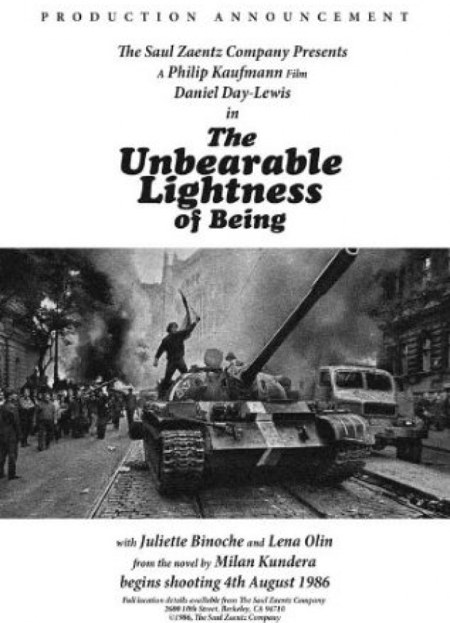 Tomas este un doctor din Cehoslovacia anilor ’60, un bărbat apolitic care se îndrăgostește de Tereza, o fată simplă, foarte studioasă. Fosta lui iubită, sofisticata Sabina, acceptă relația lor, iar cele două femei devin foarte bune prietene. Cei trei sunt prinși în evenimentele din timpul Primăverii de la Praga (1968) până când tancurile sovietice strivesc rebelii non-violenți. Iluziile lor sunt năruite, iar viețile lor se schimbă pentru totdeauna.