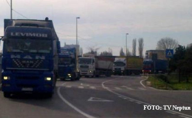 Aproape 20 de TIR-uri participă astăzi la un marș de protest al transportatorilor din Constanța. Traseul pe care aceștia îl urmează este: DN39 – Șoseaua Mangaliei – Șoseaua de Centură a Constanței. (TV Neptun)
